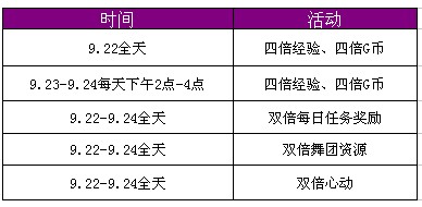 每周末炫舞都为玩家们准备了双倍与整点在线活动。值此中秋佳节即将到来之际,炫舞不但为玩家们准备了许多好礼,在9月22日-24日每天都有惊喜活动等着你哦!