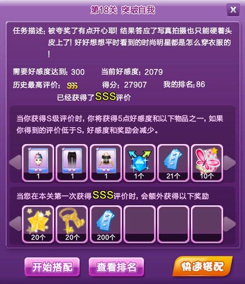 第二波 时尚旅行各关卡SSS SS S搭配图